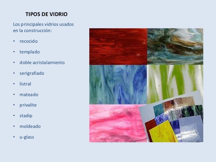 Tipos de vidrioLos distintos tipos de vidrios empleados en la construcción tienen muchas aplicaciones y características diferentes de acuerdo al destino que tenga; junto con el hormigón y el acero componen los materiales protagonistas de las construcciones actuales.Vidrios usados en la construcción: